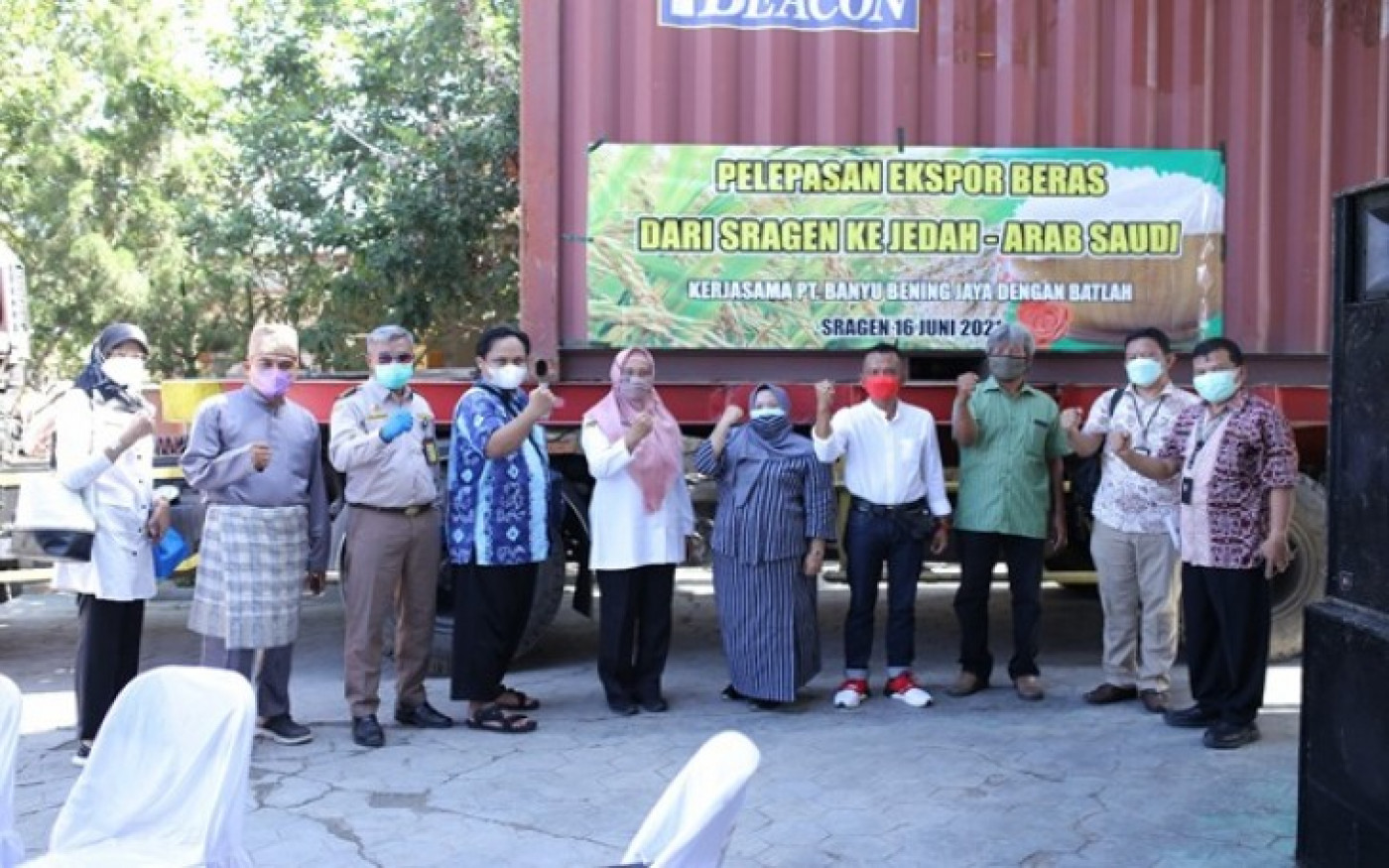 Sragen - Di tengah situasi pandemi, Kabupaten Sragen menjadi pelopor ekspor beras premium ke Arab Saudi. Sebanyak 20 ton beras premium dikirim pada launching ekspor perdana yang dilakukan pada hari Rabu (16/6). Adapun pengiriman tersebut merupakan bagian dari total kontrak sebanyak 1.000 ton PT. Banyu Bening Jaya dengan Syarikat Batlah Arab Saudi.