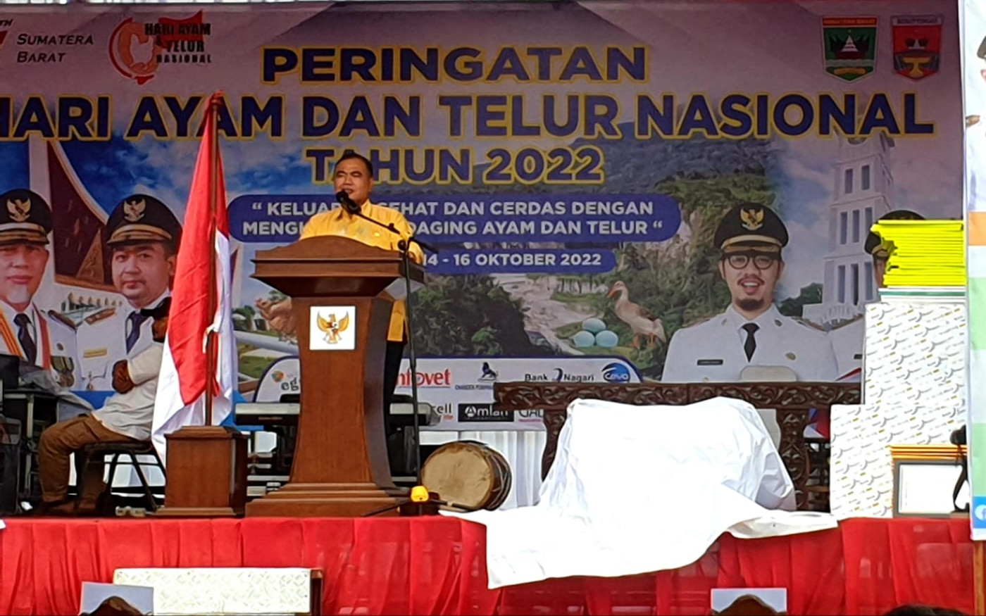 Foto : PKH Nasrullah saat menghadiri acara puncak peringatan Hari Ayam dan Telur Nasional (HATN) ke-12 dan Hari Telur Sedunia (World Egg Day), di Bukittinggi, (16/10/22).